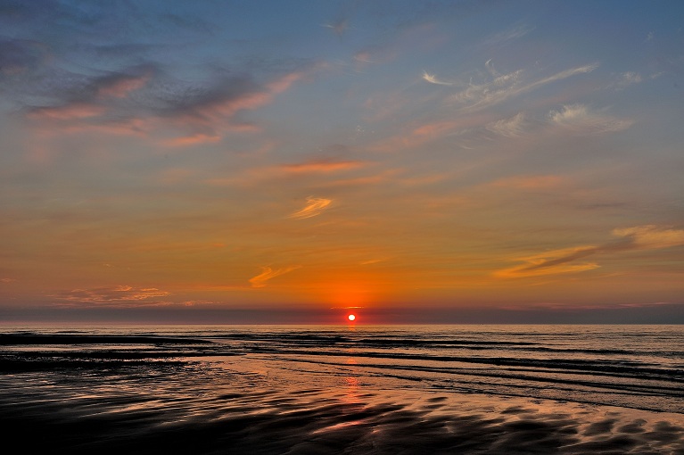 因此往往拍攝夕陽都是在半空的雲層隱沒~