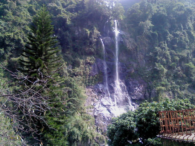 下了火車到一旁觀賞美麗的瀑布