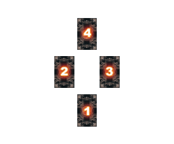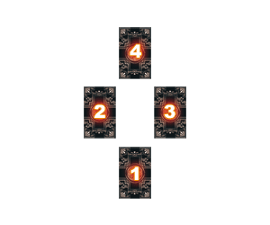 3. 重複上述動作三次,將抽出的三張牌,依順序放在 (2) 到 (4) 的位置。