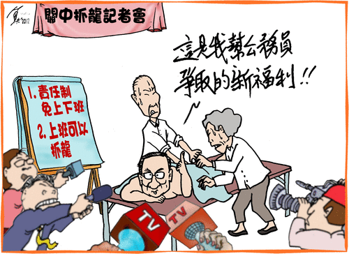 關中說公務員跟一般人不一樣,真好,他又爭取到新福利:責任制,免上下班;就算上班,也可以溜去抓龍。