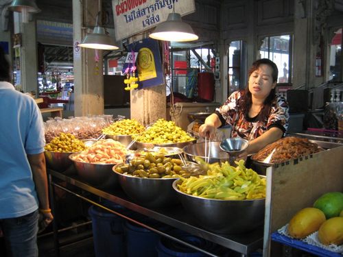 受到氣候的影響,泰國人的口味都是以重甜重鹹重辣為主,搭配上東南亞地區特有的鮮艷色彩,放眼望去的每一個小販,就好像在看畫一般,和台灣傳統市場比起來,也比較沒有生鮮肉品的腥臭味,還有一點最貼心的,在傳統市場裡的每一個攤販賣的每一個產品全全部部都可以試吃喔!!