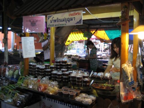 如果說到了傳統市場非得有什麼東西買來嚐嚐的,愛吃辣的呢,可以試試泰氏傳統辣醬,成色看起來很像澎湖出產的干貝醬,看得到辣椒和小蝦米,店家用水煮的箭筍讓我們沾著吃,帶著味曾口感的微甜,可以依自己喜歡的辣度做選擇,而且,一盒只要25塊泰銖,便宜又好吃喔!!