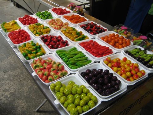 喜歡吃甜食的呢,一定要買來吃吃看的是右邊的這些小東西,第一眼看到的時候,我們還以為是上了糖膠的小水果,直到店家讓我們試吃才發現,這一顆顆可愛的水果,可是入口即化的紅豆餡餅!!就只有紅豆一種口味,甜而不膩喔!!