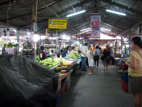 走進泰國海椰寺旁的傳統市場,其實乍看之下和台灣的傳統市場沒什麼不同,一樣是鐵皮搭的頂,用紙箱木板搭起的攤架,水泥地上到處都有橫亙而過未遮掩的水管,因為常被踩過而破裂噴水,除了攤販吆喝著的是泰文,招牌寫的是泰文之外,還真以為回台灣了呢!!