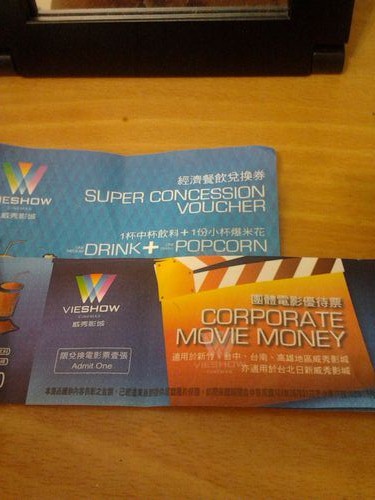 公司今天莫名奇妙發了2張華納電影票2張吃的~