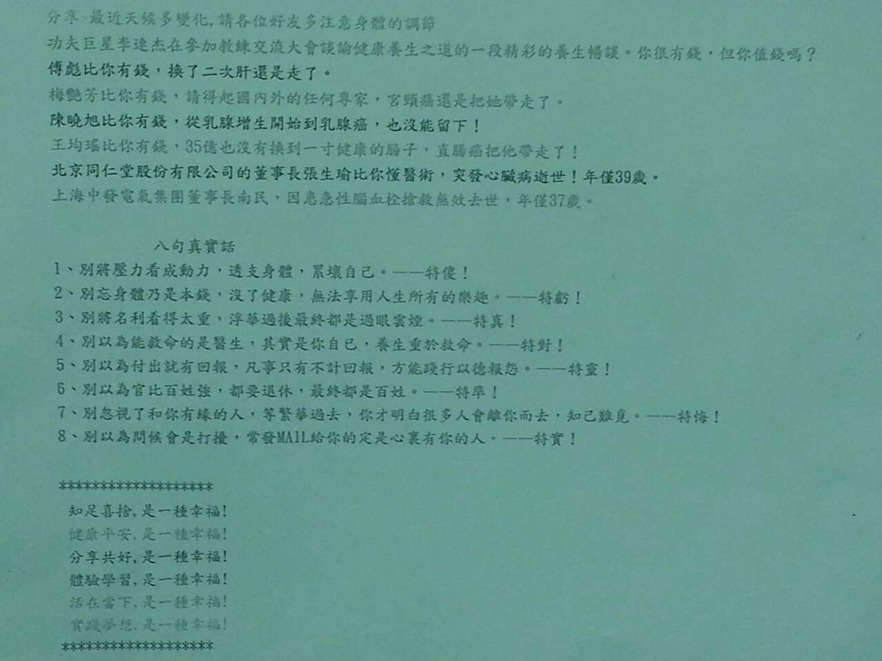 每個人擁有的財富是健康! 但偏偏大多數的人 都把財富灑出去!!