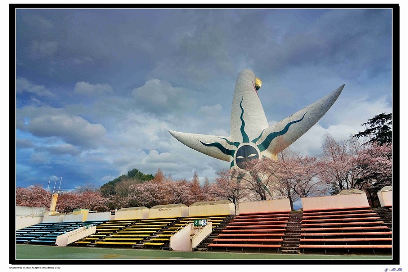 因此在櫻花道下方的球場拍著萬博著名的地標