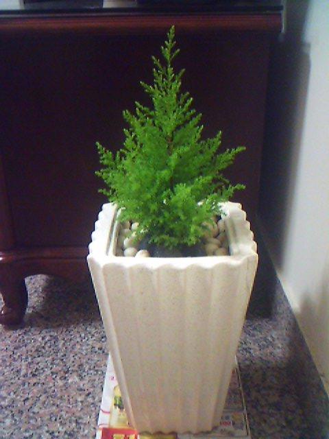 換了盆之後.....ㄜ........還蠻像小聖誕樹的.. 有點給他好笑....
