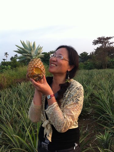 秋天的鳳梨快熟了,這是第一顆!哈,又被老鼠咬了一口....