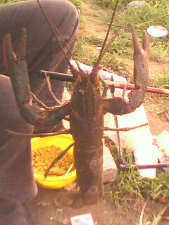 雖然釣魚又打龜了 不過最後釣起一支美國敖蝦 = =