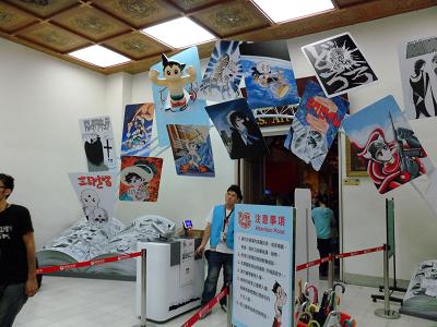 牆上有介紹手塚大師句作 上面有動畫影片膠捲佈置