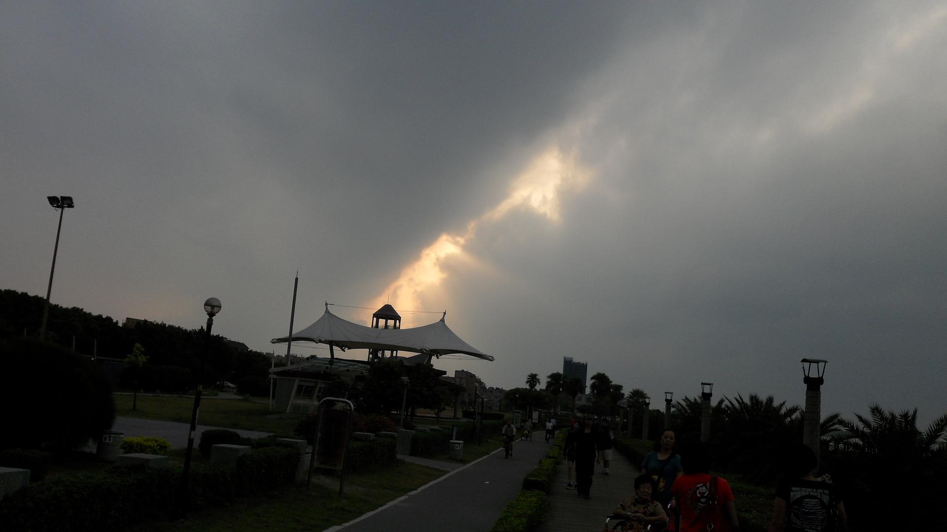 回途中 我看到天空的雲 好像被劃一刀一樣 夕陽好漂亮