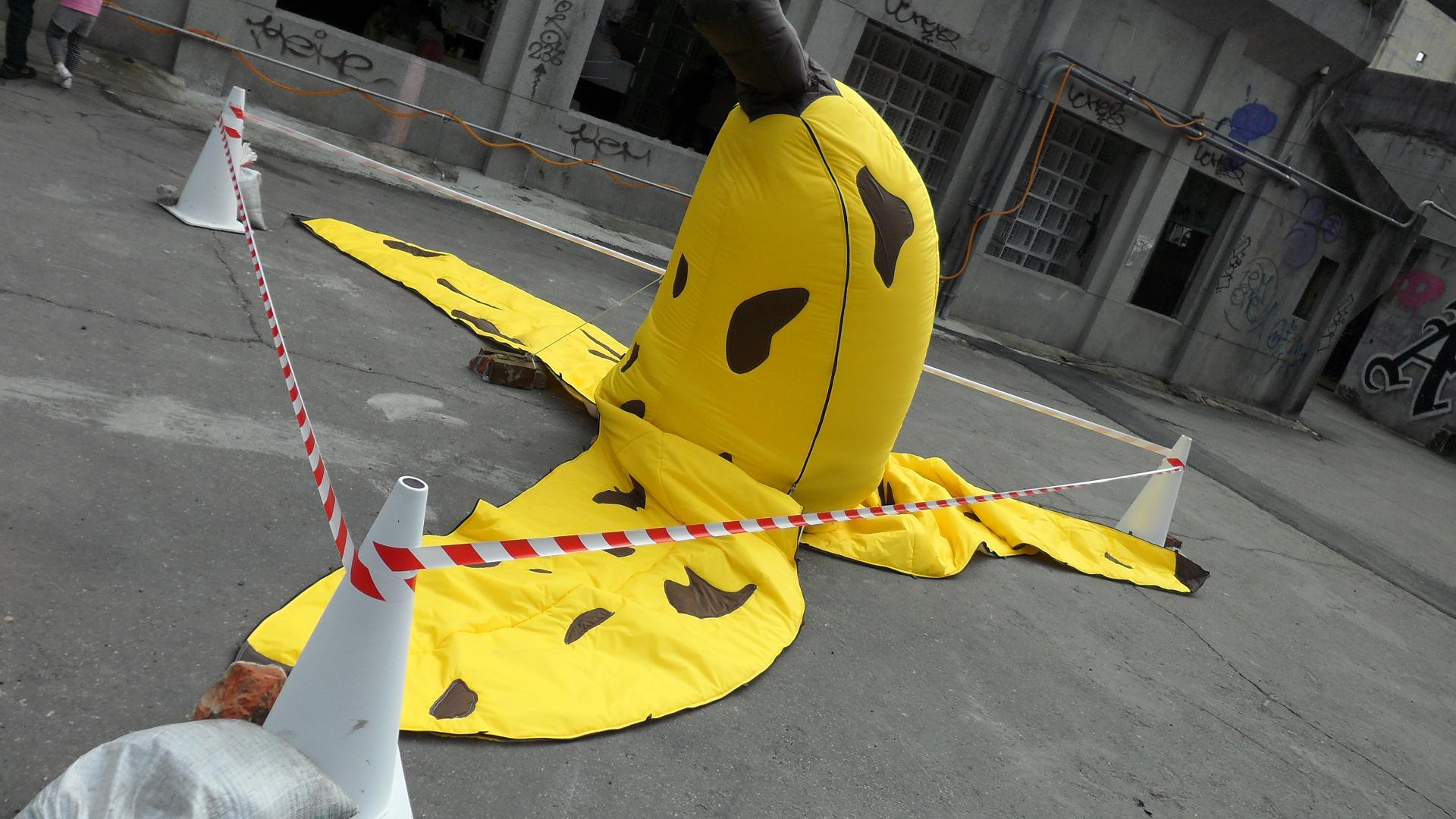 超級大香蕉有人被它絆倒了 所以要圍起來 命案現場 (開玩笑的