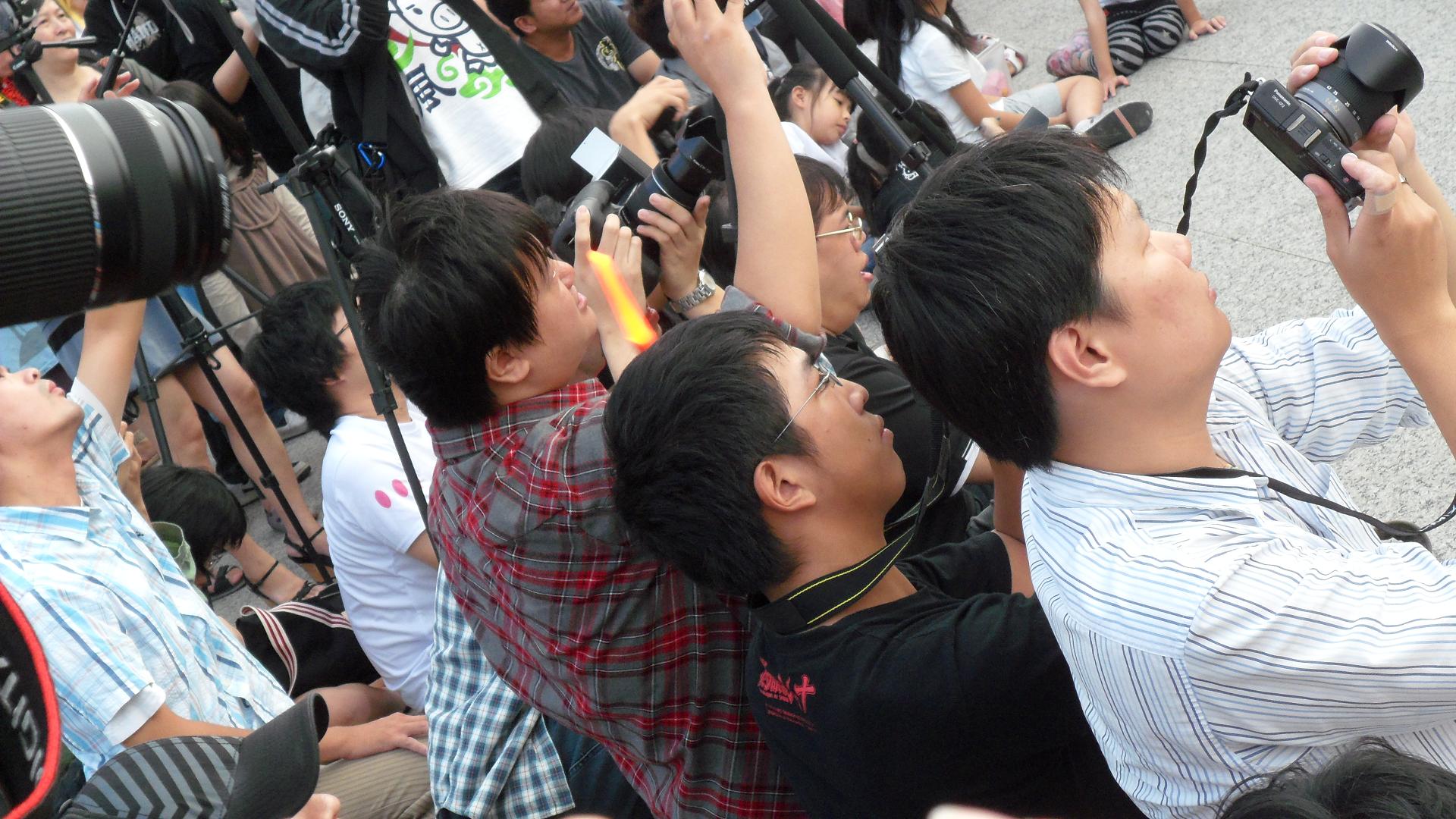 呵 還有大炮耶 看大家多專業 不像我拿普通相機來拍 還有人拿螢光棒 超融入的