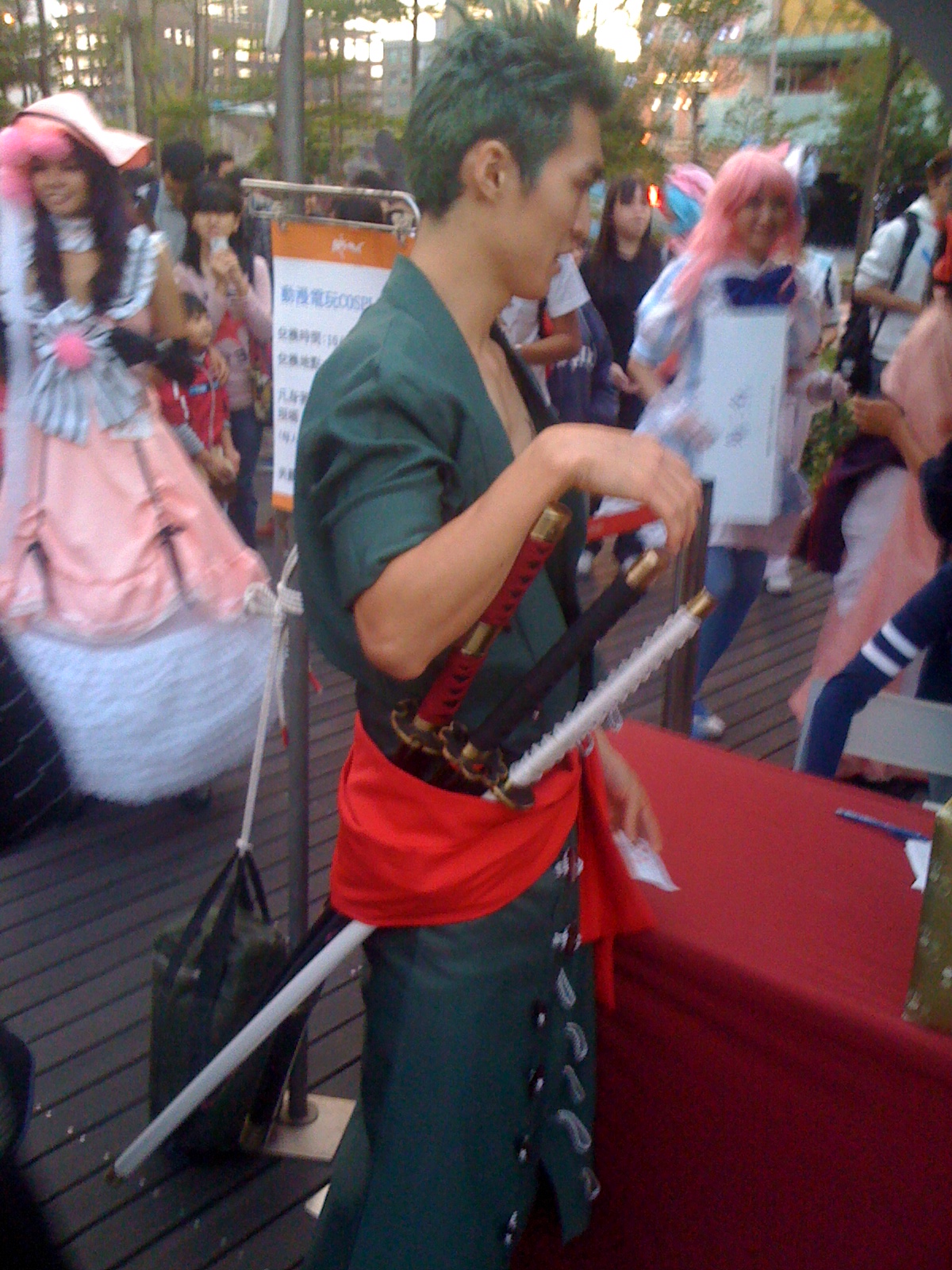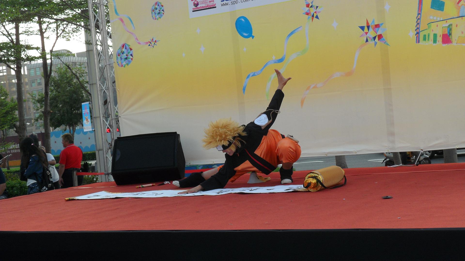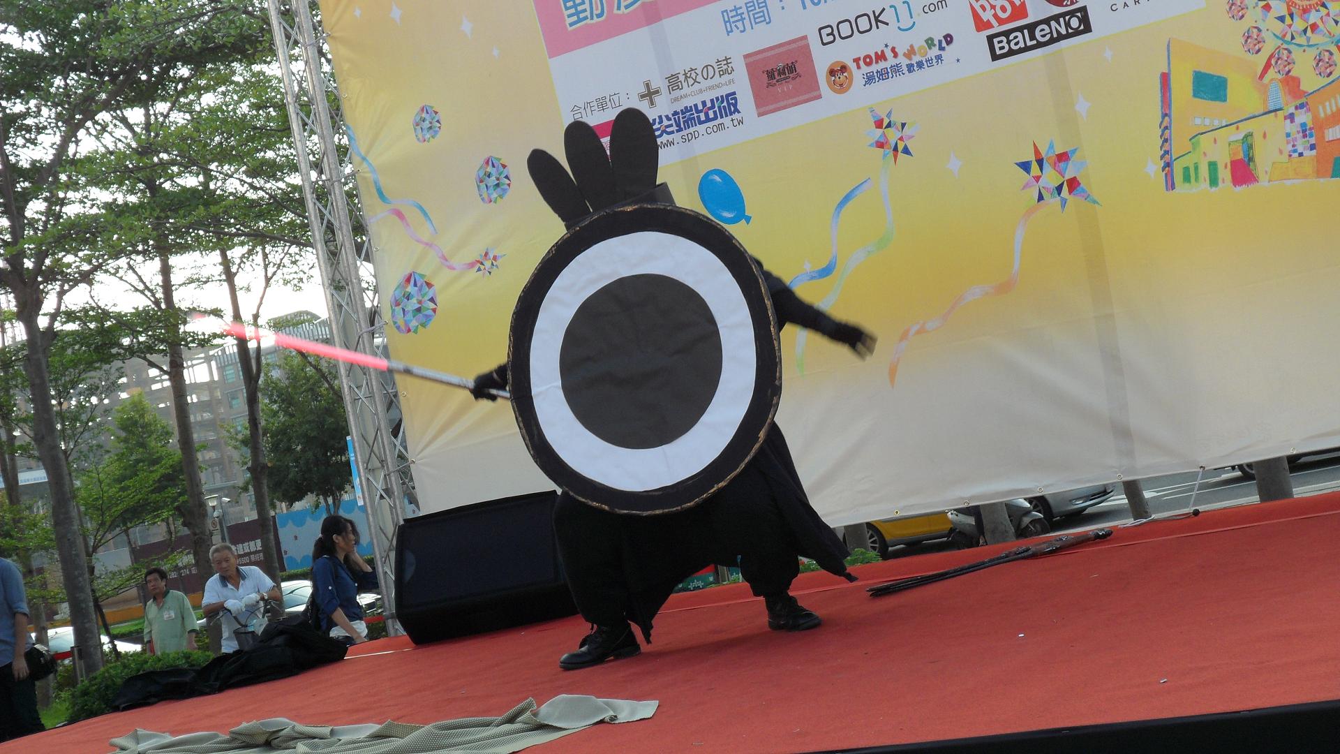 這位帥哥 也是耍劍的 大概他很想跟索龍 PK 吧 我在想怎麼索龍不上來在一起表演呢