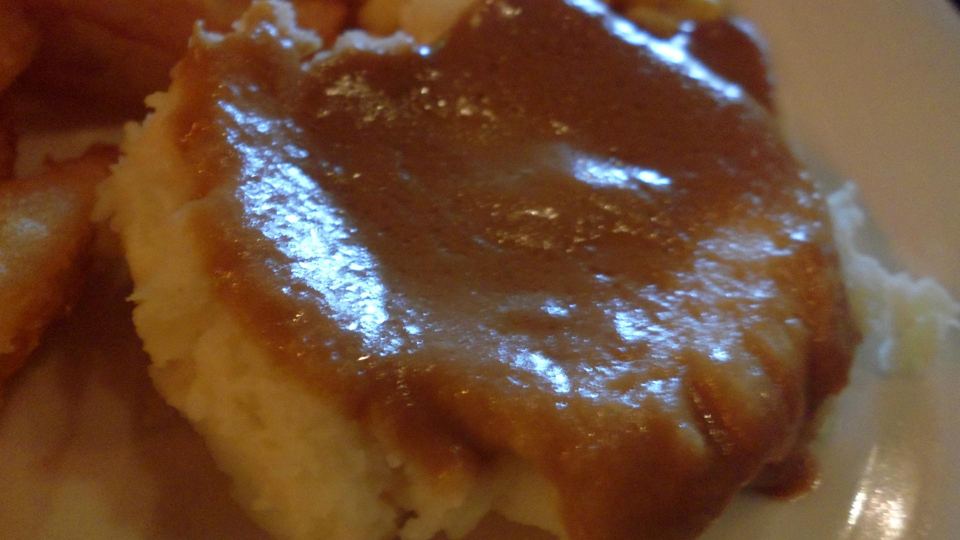 再來馬鈴薯泥 上面醬汁是咖哩 裡面有淡淡的蘑菇香
