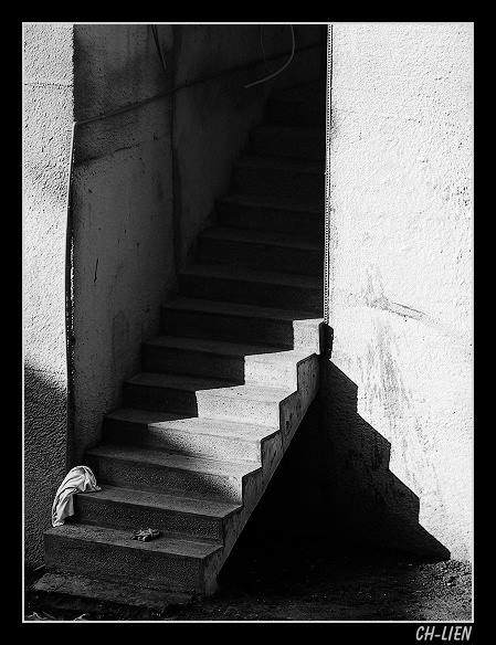 某一個午後,我看到陽光無情的把樓梯一分為二,