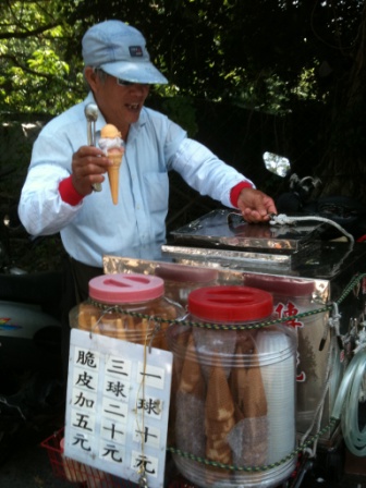 喜樂地各買一球冰淇淋