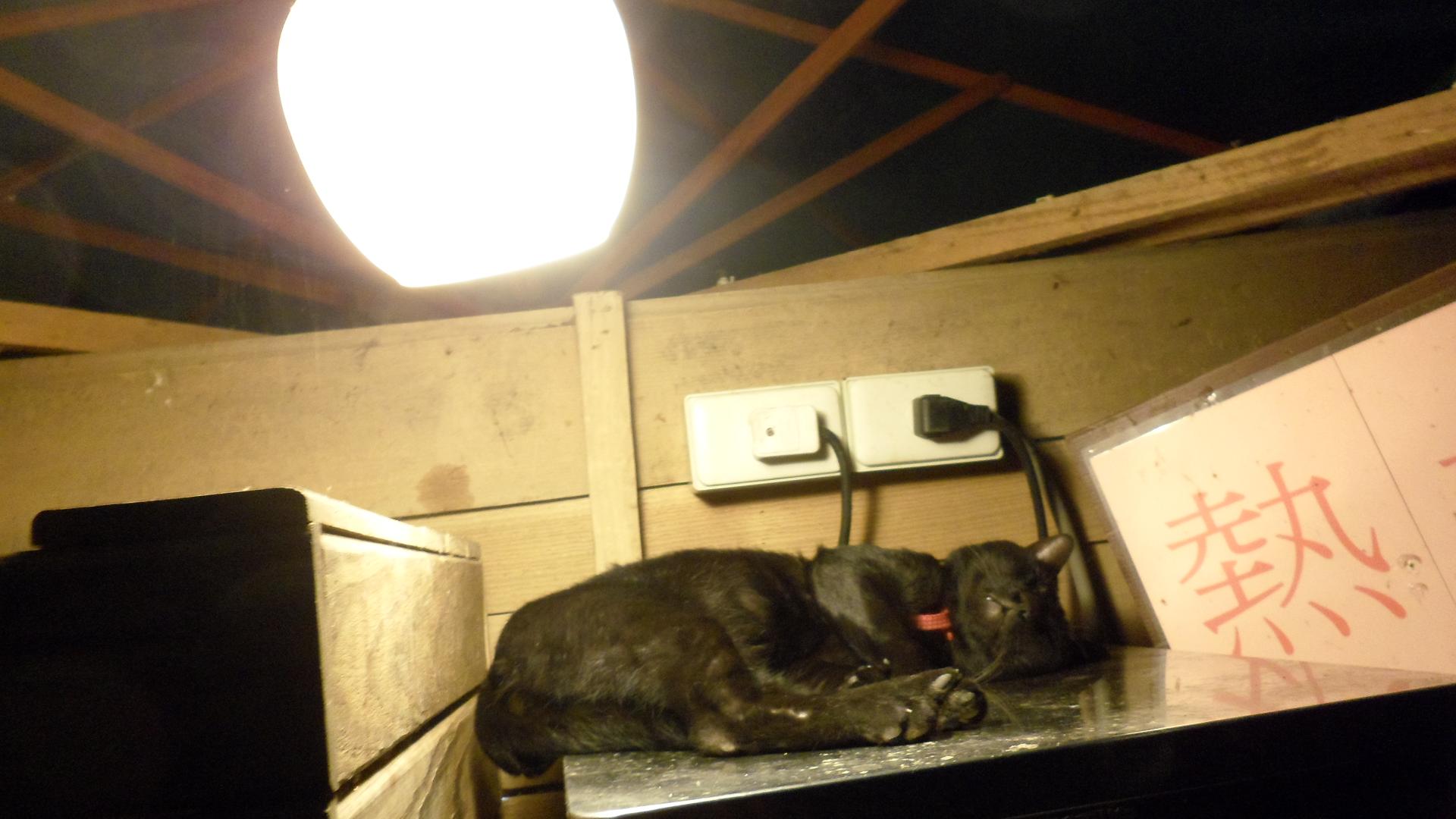 大概是晚上 山上變冷了 貓乾脆就在這裡取暖