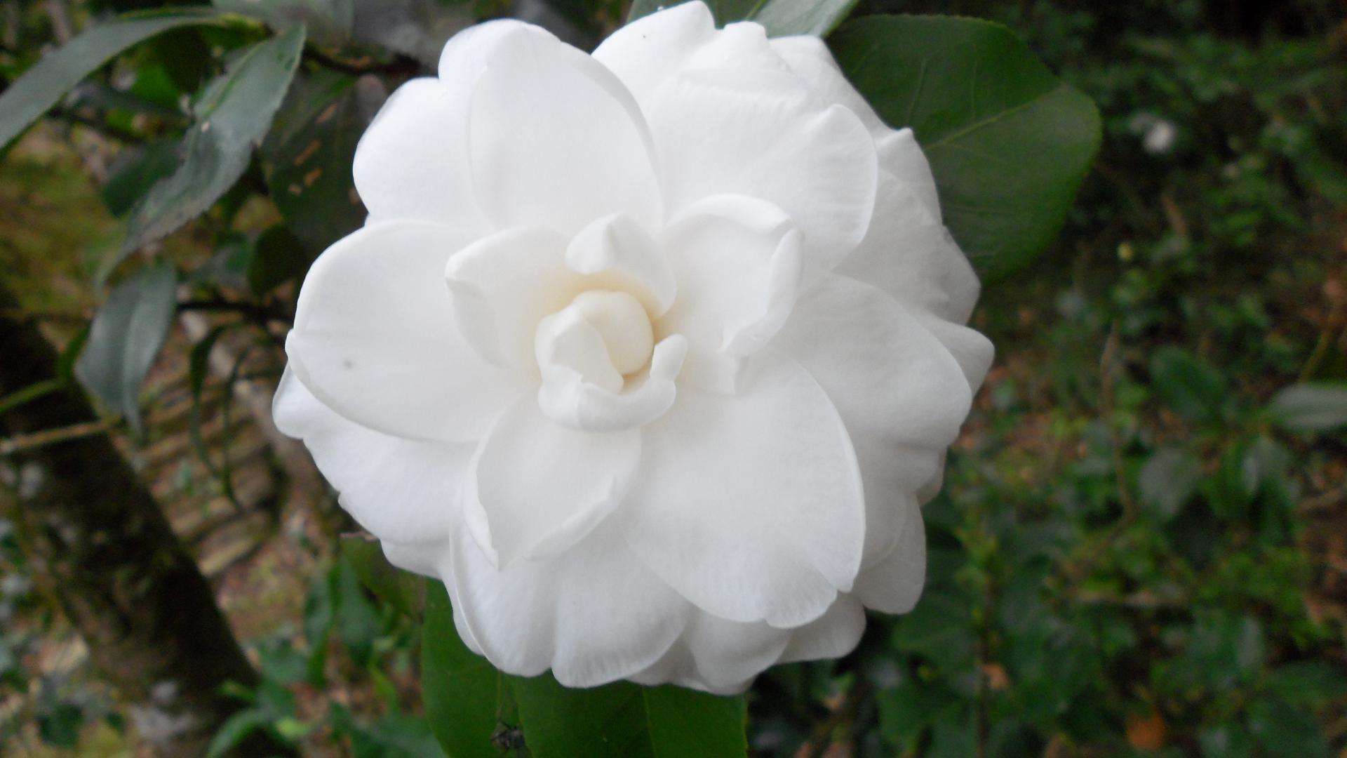枯紅的楓葉 在我手上特別明顯 白色花朵開的好漂亮
