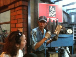 從切割炮彈片到打制鋼刀的全部過程,