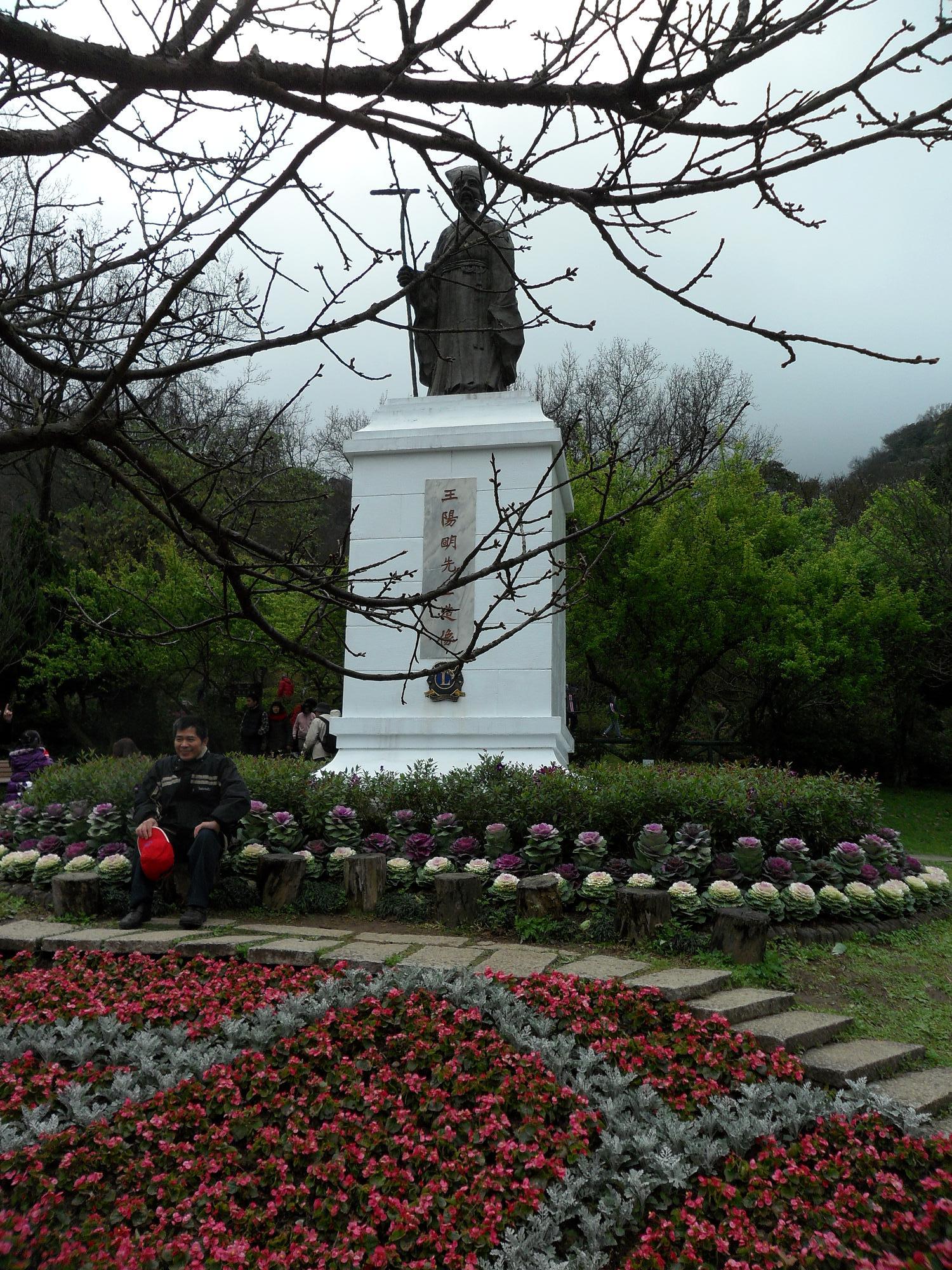 天氣不是很好 櫻花拍起來好暗 王陽明像 到底是因為有王陽明像才叫陽明山 還是先有陽明山才有王陽明像