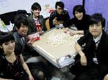 2008/11/30 / 方大同 , 郭采潔 , 蕭敬騰 , 張棟樑 , 何維健 , 黃靖倫 蕭敬騰 黃靖倫 何維健 采潔麻將桌上大廝殺 不聚賭的方大同拿吉他為這場方城之戰伴奏 2008/11/29(六),因為V POWER演唱會,華納群星意外在後臺相見歡,包括蕭敬騰、黃靖倫、郭采潔、張棟樑、方大同以及新人何維健,唱片公司深知這些歌手的共通點就是喜歡臺灣國粹-麻將,於是把麻將桌搬到後臺,麻將一攤,華納群星的方城之戰正式開打。 最愛麻將首推『省話一哥』蕭敬騰,而黃靖倫也不遑多讓,私底下常跟朋友一起打小牌,於是麻將桌一登場,最開心的便是他們倆,何維健也開心的表示,很久沒玩牌了,因為在臺灣都沒有牌咖,今天一定要好好把握機會小玩一下。而張棟樑則是被大家公認看起來最不會打麻將的人,沒想到打起牌來有模有樣,至於郭采潔在張棟樑上臺表演時,先代「夫」出軍上桌廝殺一番,於是牌桌上出現三子教娘的畫面,也許是只有她一位女生,讓她格外緊張,頻頻『相公』,也就是不小心多拿或少拿一張牌,但師弟們包括黃靖倫、何維健和蕭敬騰都故意『裝瞎』,讓郭采潔犯規趕緊補牌,貼心的舉動令郭采潔感動不已。 在場唯一不會打牌的就屬來自香港代表的方大同,與方大同私交不錯的蕭敬騰也力邀大同坐他旁邊,試圖想要教會大同玩牌,但方大同因宗教關係,不能聚賭,他也笑說:「我在旁邊看就好了。」於是默默從角落拿出他的吉他一邊伴奏一邊演唱自己的成名曲『愛愛愛』,逗的所有藝人哈哈大笑。期間還爆出了小插曲,蕭敬騰出牌打了張『二筒』,喊了一聲『二筒』,誰知方大同以為是在叫他,竟然還答:「又,怎麼了?」更讓大夥覺得大同兄實在是太逗趣了。等到張棟樑上桌打牌時,大家也知道恰好今天是他的生日,於是在牌桌上唱起生日快樂歌祝賀他,讓張棟樑不得不說:「真是特別的生日,第一次聽到生日快樂歌是在牌桌上唱的。」 而這場方城之戰的賭注就是歌手自己的專輯,桌子上的四個角落分別擺放了黃靖倫的『倫語錄』、張棟樑和郭采潔主演的『無敵珊寶妹』原聲帶、新人何維健的『新生』及蕭敬騰的『同名專輯』。蕭敬騰還笑說:「應該拿改版後的『終極收藏版』出來(要價700多元),這樣我穩贏的啦!」不過最旺的莫過於黃靖倫,不斷的胡大家的牌,還自摸了好幾次,讓工作人員都不禁搖頭說:「怎麼平常上通告都沒看你眼睛睜那麼大過,就是現在最有精神了。」今天這場方城之戰也讓師兄師弟師姐的感情愈來愈好,直說要和其他唱片公司的藝人廝殺,工作人員笑說這大概是第一次做通告,大家最認真的一次,完全不需要宣傳或經紀人在旁;何維健和黃靖倫也相約下次要到師兄蕭敬騰家坐客打牌,還要采潔和棟樑趕快把戲殺青,大家才能有機會再齊聚一堂!