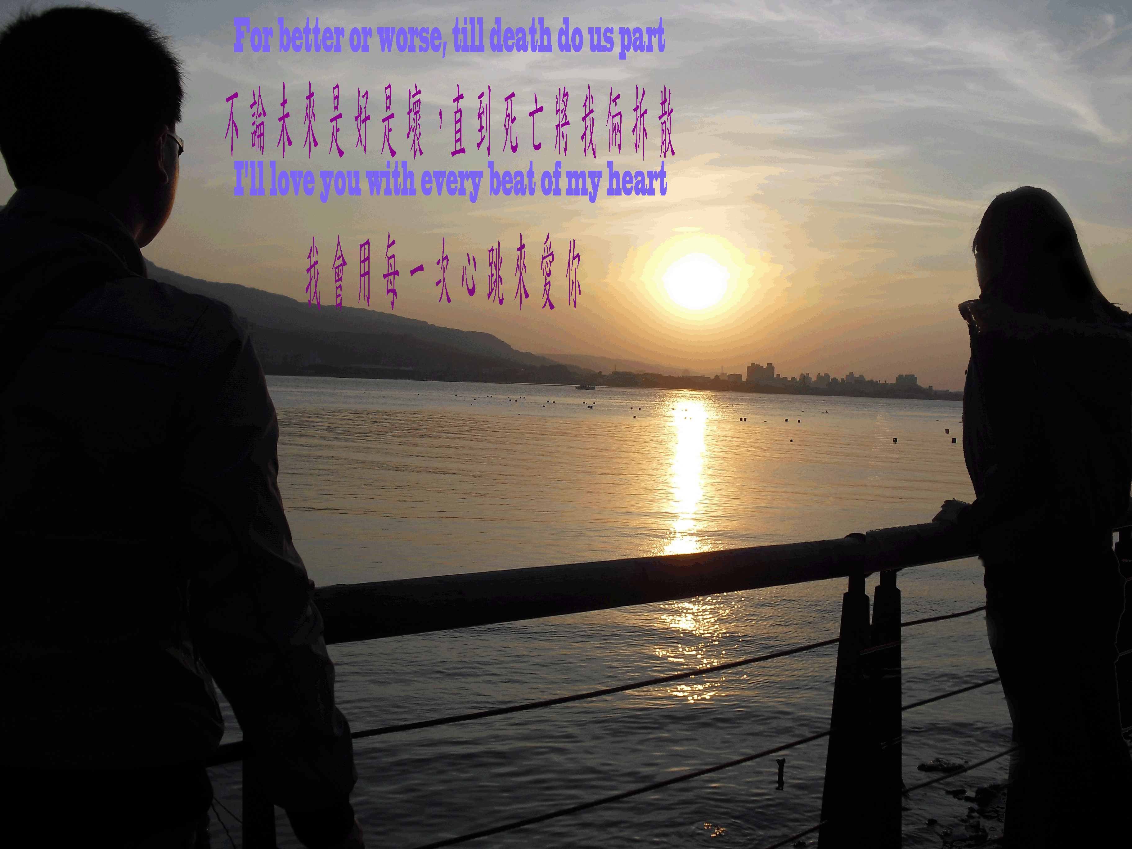 老公 我們終於要結婚了 之前 總是聽很多人說 女人容易得婚前恐懼症跟婚後憂鬱症 我一直不明白 結婚是件很值得高興的事呀 怎麼還會恐懼和憂鬱咧 原來 恐懼症-是擔心自己當人媳婦當得不好 和公婆之間有隔閡 而憂鬱症 是不習慣自己多了一個新身分 ★ 人妻★ 我想我不會有恐懼症的 因為你爸媽是很好的長輩 我也相信他們會很疼我的 而恐懼症... 我想我應該也可以習慣的 因為我知道你很疼我 所以才放心答應嫁給你 不用太擔心我 回想當初我們剛認識的時候 你那種很羞澀的樣子 現在想起來真的很好笑耶 .. 我想我們到老都還可以偶爾拿出來回味 結婚後 我們兩個身上的擔子更重了 因為接著要生小孩 養房貸 小孩教育的問題 還有爸媽老了 我們都需要盡到晚輩的責任了 我希望將來不管發生甚麼事 我們都可以這樣一輩子都不吵架 甜蜜到老 好不好 最近忙著準備婚禮的事情 會比較忙比較累 你要多辛苦點囉 因為你不是固定時間上下班的