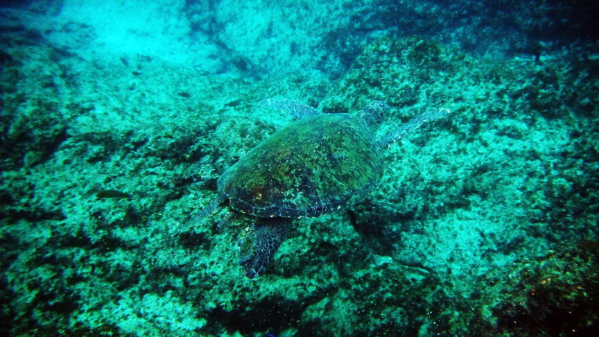 靜靜的看著綠蠵龜悠游的在海洋中飛翔