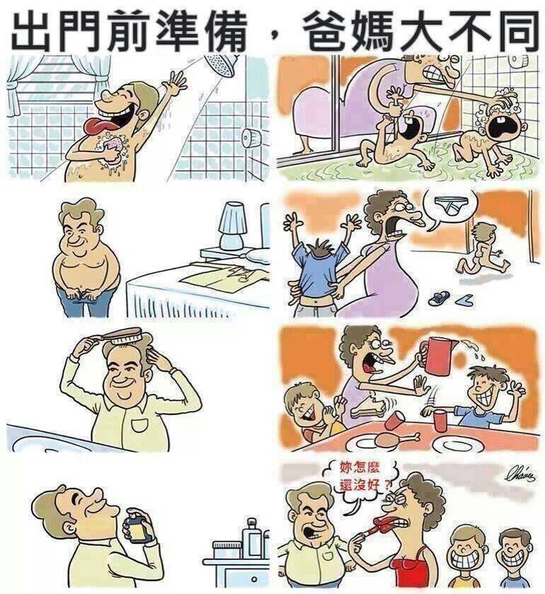 出門前準備..爸媽大不同