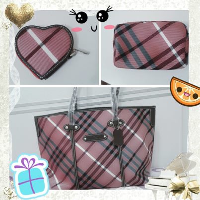 1大2小系列皮包-----「紫紅色格紋包」