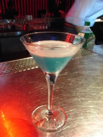 第一杯喝的是 Goose d’Azur 灰雁蔚藍海岸,grey goose、柑橘酒、苦澄酒,跟糖漿,然後再用打泡器打出檸檬泡沫倒在上層漂浮,我很認真地問了bartender關於這層檸檬泡沫怎麼做的,bartender 說這個檸檬沫是檸檬汁加上吉利丁做成的,我覺得這個檸檬泡沫替這個調酒加了不少分,新鮮檸檬的酸味很清新、很舒爽,完全喝不出酒精味,酸甜無比的冰涼滋味真是美好!