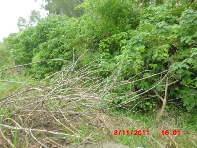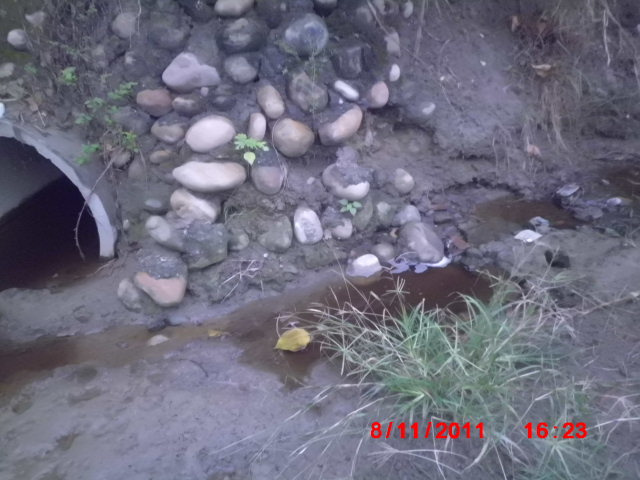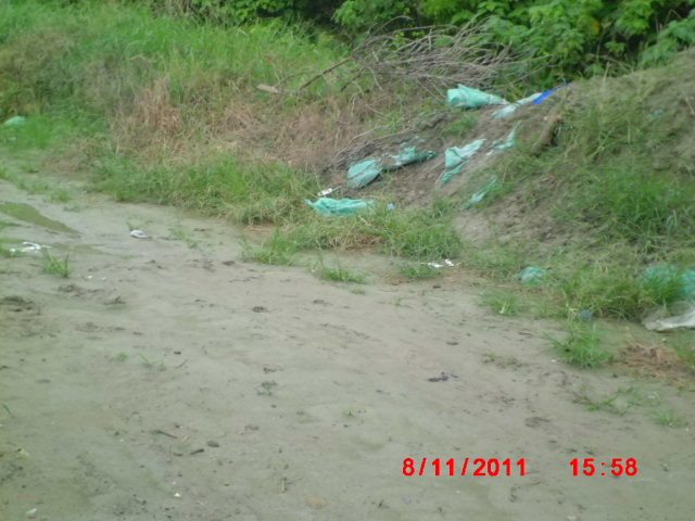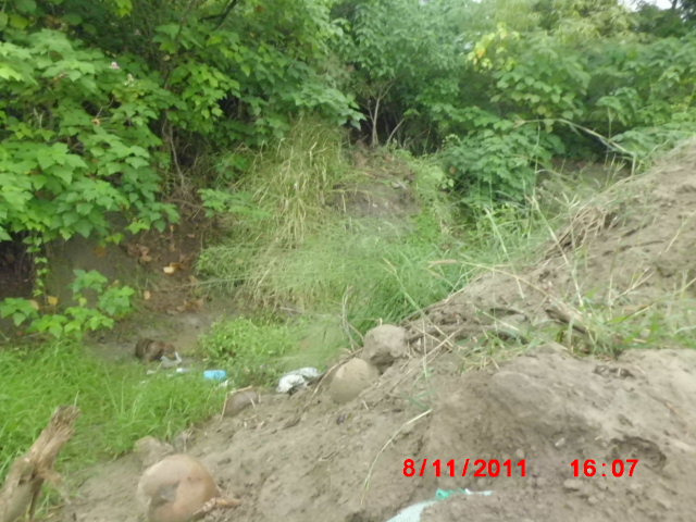 走到廢棄的排水口,亂排的廢棄物農藥髒水一堆
